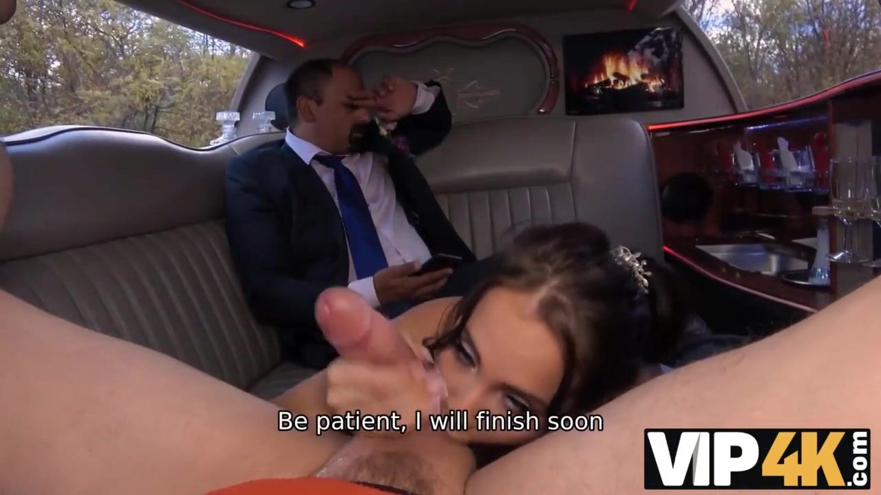 VIP4K. Random passerby scores luxurious bride in the wedding limo