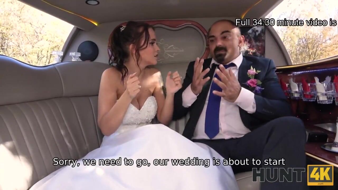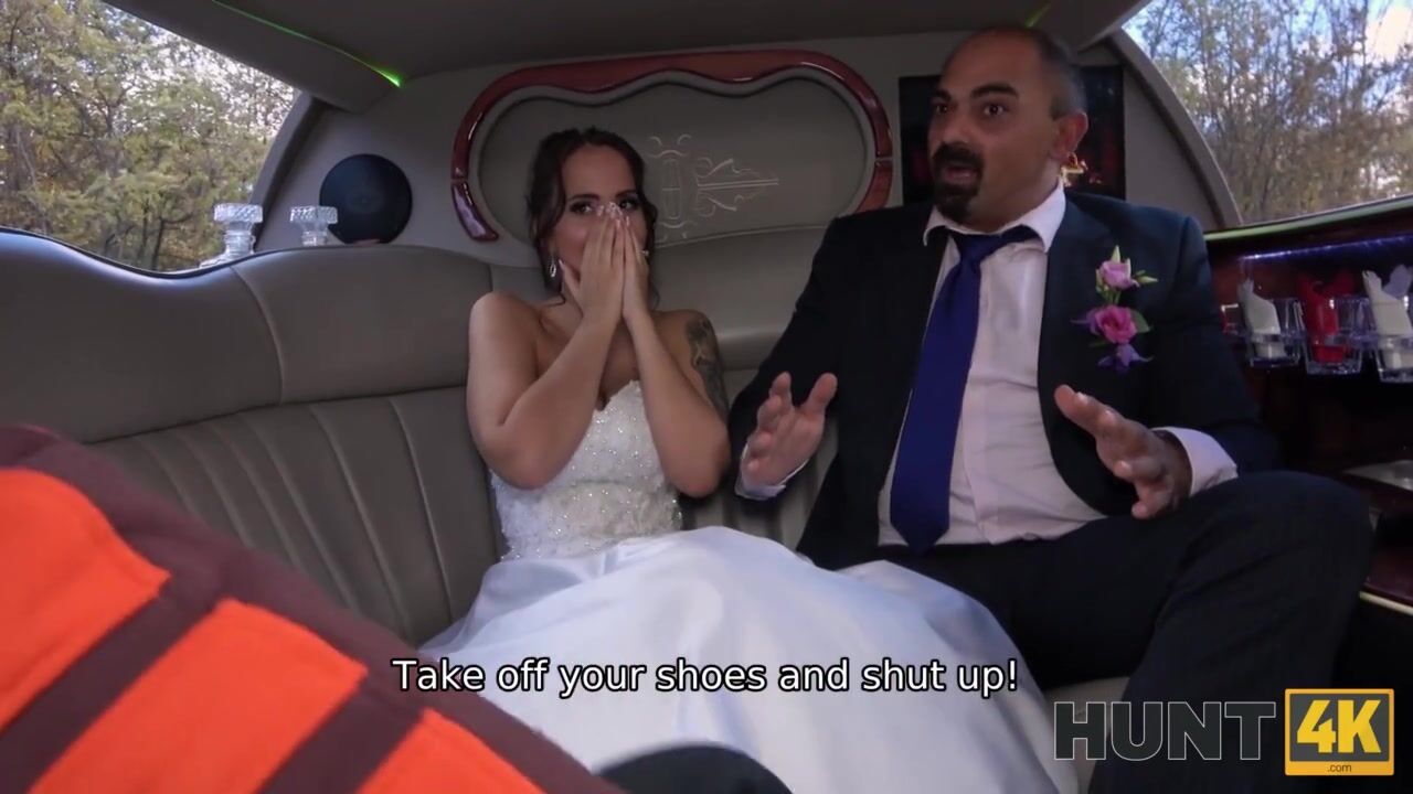 HUNT4K. Random passerby scores luxurious bride in the wedding limo