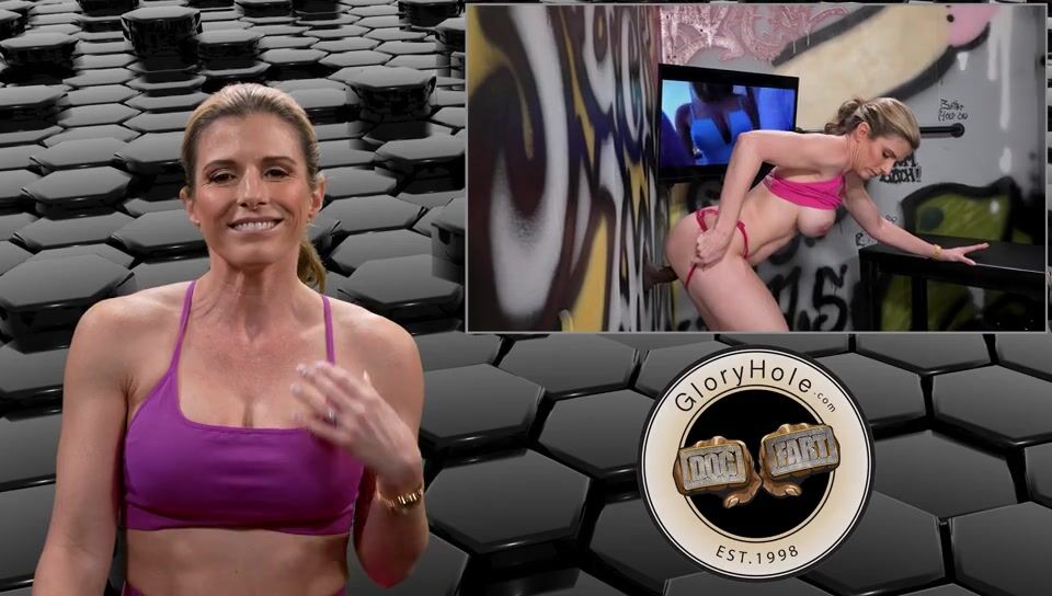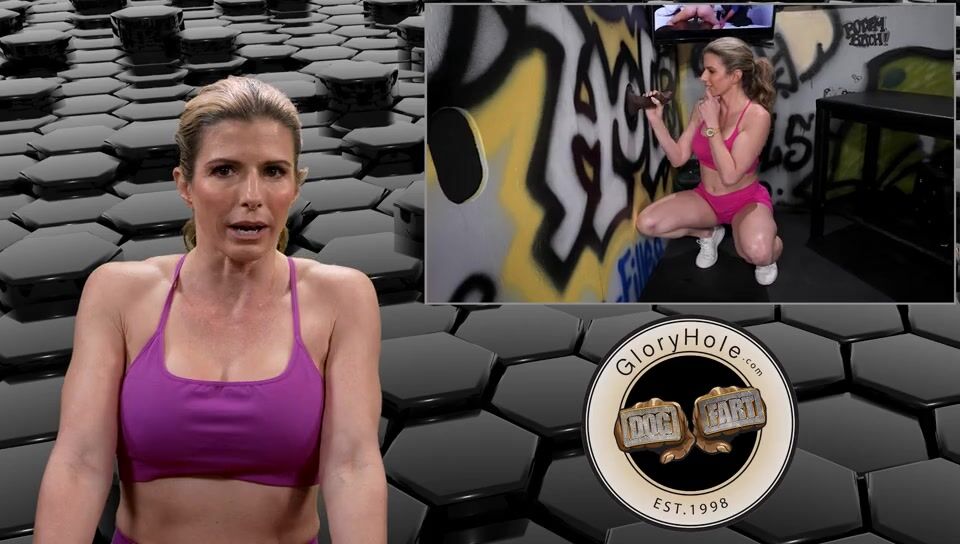 Cory Chase has just moved to town and is trying out the new gym by her. She is amazed at how hot everyone is, especially some of the male trainers that are leaving her panties wet. Hopping on the treadmill and chatting up one of the other women if any of these hot guys are single and available she replies, Oh no she says they all go to a spot around the corner to hook up at the glory hole so they don't get caught fucking the gym patrons. Cory follows a couple of them at the end of their shift over there and finds a stall. In just a moment a huge cock appears (Don Prince) and Cory drops to her knees still in her workout gear to suck and savor the dick. But then she hesitantly backs up on it whispering through the wall if it's ok to fuck him too. Being such an athlete she hikes her leg halfway up the wall to get that dick as far inside herself as she can. But once she lays back on the bench the anonymous guy starts to really pound into her and sets off her cumming over and over again. But not done with him yet she drops back to her knees to milk his cock for as much of the cream as she can get.