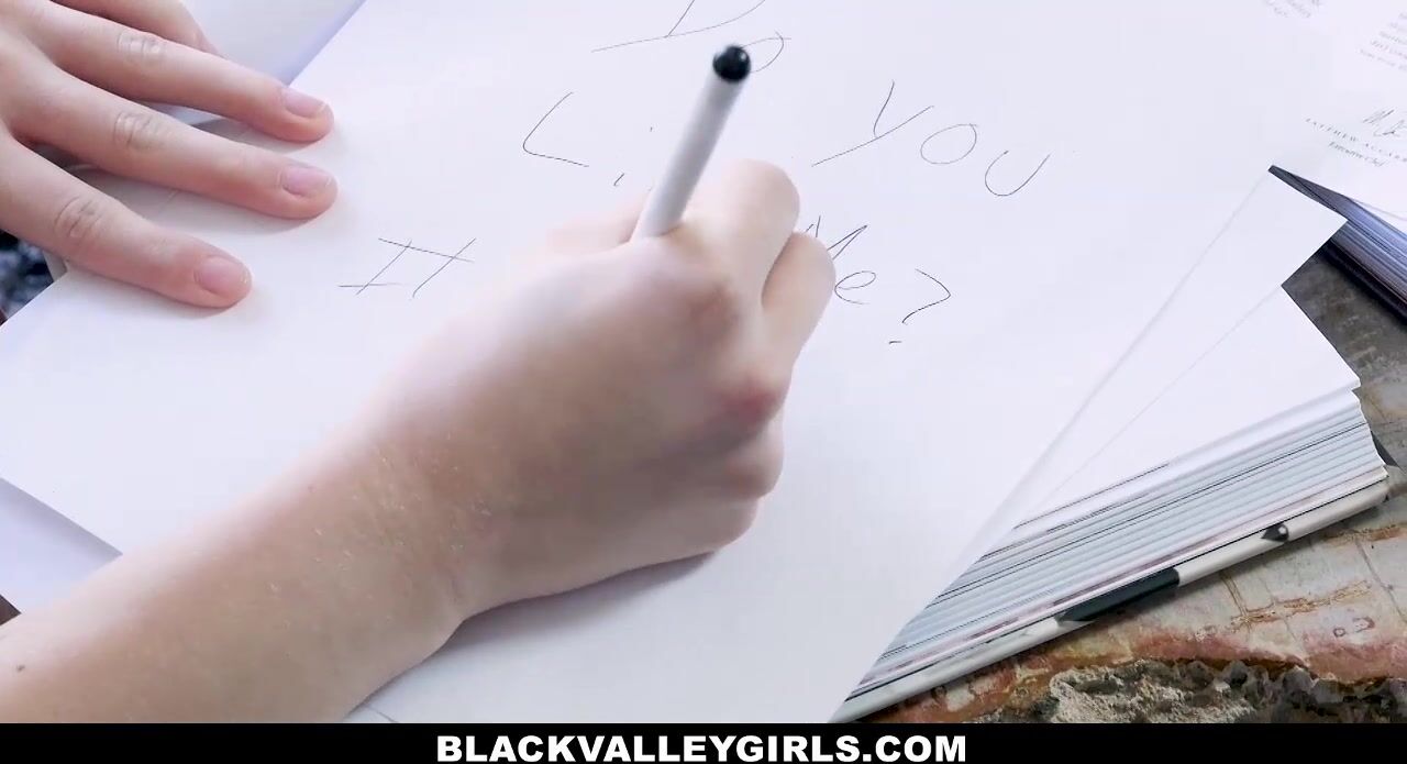Vienna waited for tyler to get out of the bathroom and passed him a love note. Tyler then expressed how he does not want Darcie, he wants Vienna! She was so flattered that she started to suck him off right there in the living room with Darcie right behind them. This Black Valley Girl was ruthless and horny! They finished things up in the bathroom and Vienna even swallowed his cum. Tyler then went back to Darcie and made it seem like nothing had ever happened.