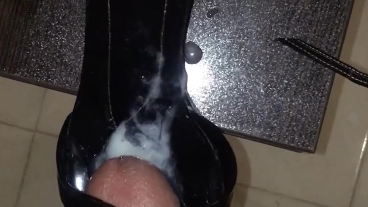 Fuck Shiny Black Platform Heels and Cum in Shoe