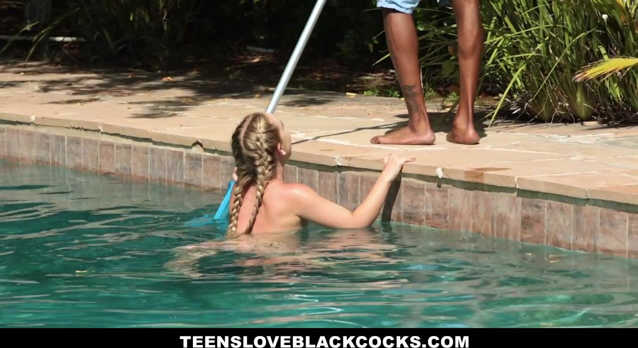 Super hot jaw dropping blonde teen babe Kami Kari has her tight pussy destroyed by the giant hard black cock of her aunt's pool boy.