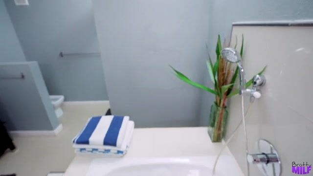 Tiffany Fox beats her stepson to the bathtub but he joins her to kick off a wet and wild stepmilf pussy pounding