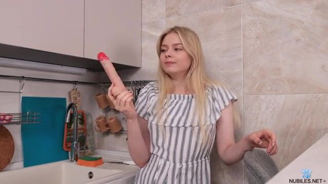 Oh no, Kri Lych has found a dildo in the kitchen and now she wants it more than she wants a snack!