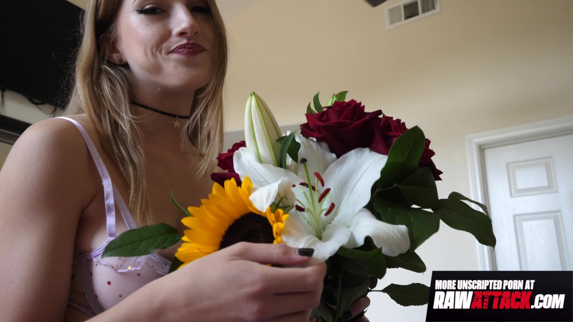 Octavia red is a sweet slut who loves pleasing her man in many ways. She knows that her partner is having a hard time, so she prepares some flowers for him. She shows off her sexy body in sheer purple lingerie to the man before teasing him on the bed. Octavia gives the horny bloke a sensual blowjob. She lets out soft moans of pleasure as the man slides his cock into her shaved pussy. The busty cutie can't help but enjoy the passionate pussy pounding in missionary and doggystyle. She gives the hard cock a tittyjob before riding on it in cowgirl and reverse cowgirl. The lucky lad fucks Octavia in missionary before spraying his warm cum all over her beautiful face.